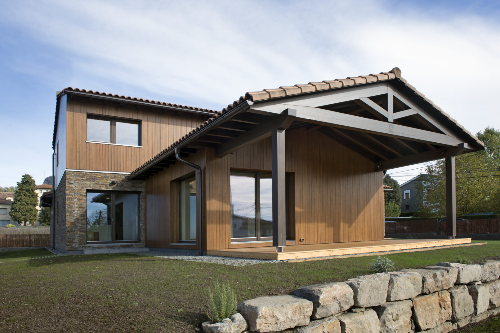 Casa amb estructura semipesant de fusta, mecanitzada i prefabricada partint d’una planimetria 2d i 3d.